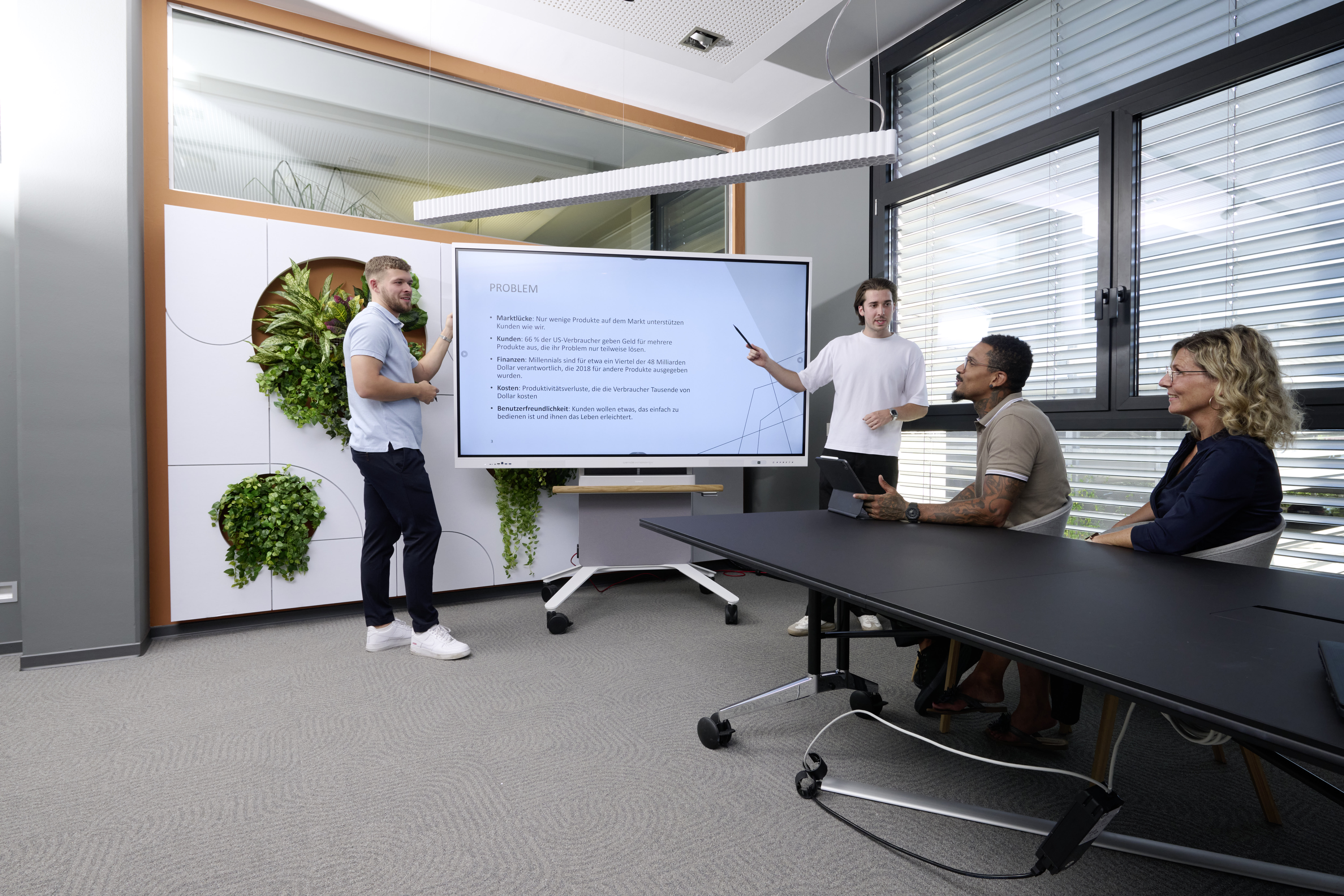 Mitarbeiter und Trainer bearbeiten und präsentieren Inhalte direkt am Bildschirm, während die Teilnehmer ihre eigenen Geräte kabellos verbinden können. Und dank der intuitiven Bedienung und sofortigen Einsatzbereitschaft sind unsere Touchscreens auch ideal für externe Trainer und wechselnde Schulungsgruppen.